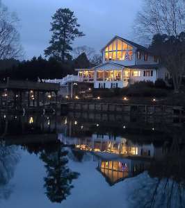- Depending on the water level, depth off the dock is between 15'-20'. It's up to 45 feet deep within casting distance.