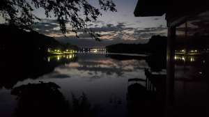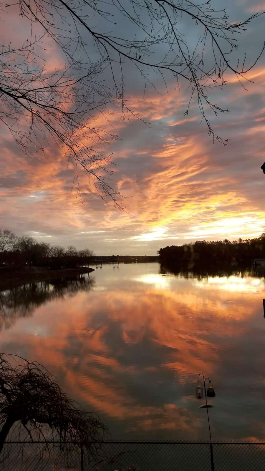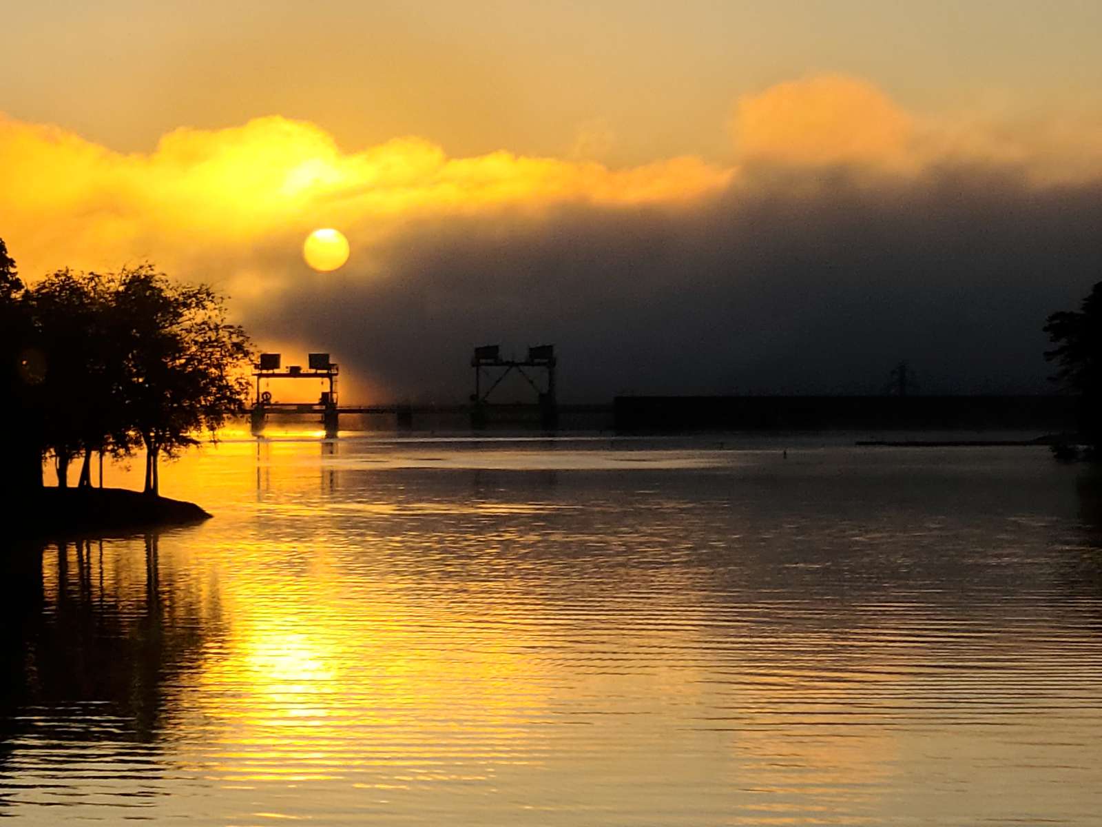 we hardly notice except for the tree tops blowing. Very often we'll see white caps crashing into the dam on the main channel, but