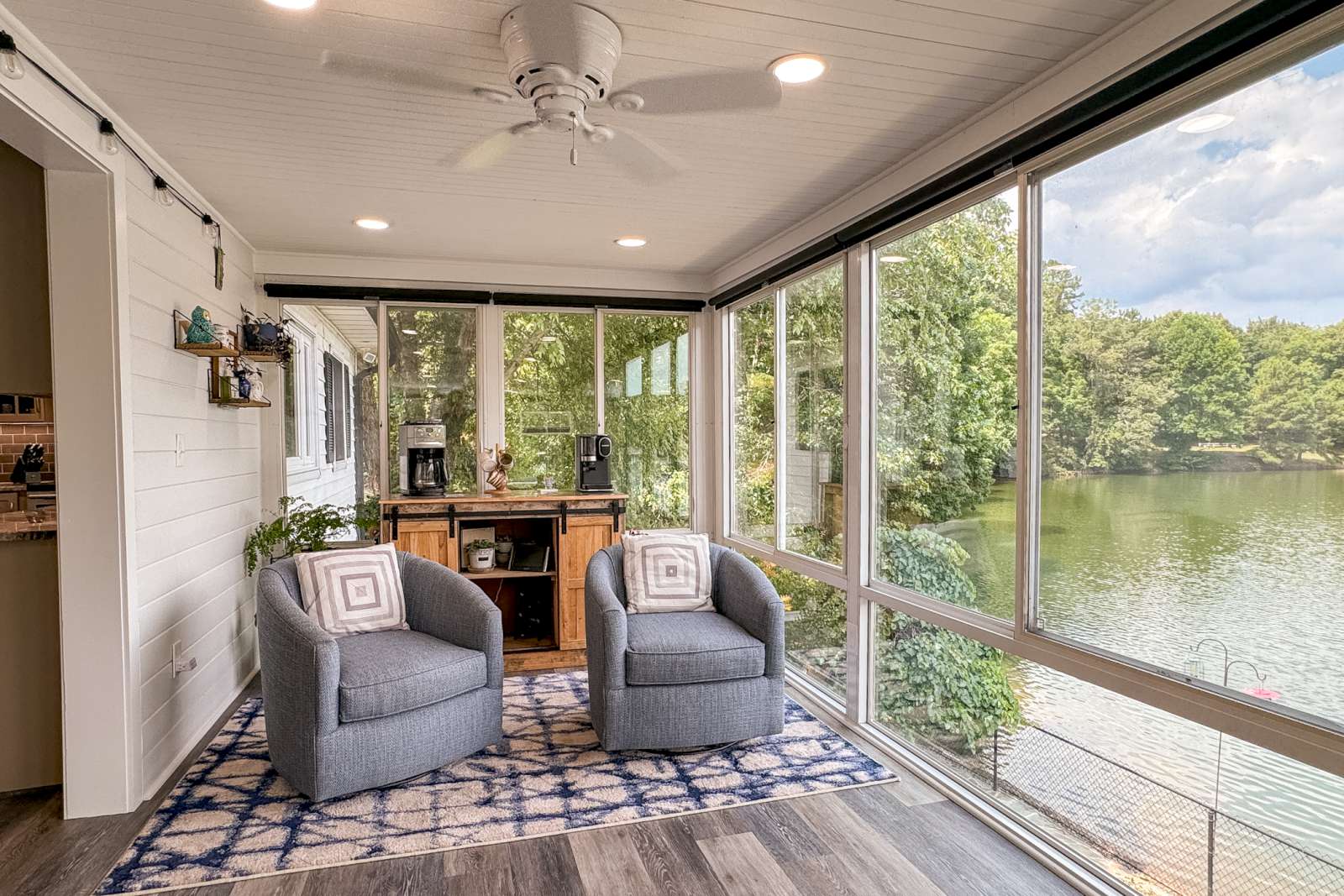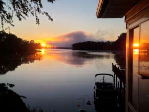 - From the lakeside sunroom one can enjoy watching amazing sunrises, the fish just below us, ducks, geese, loons, osprey,
