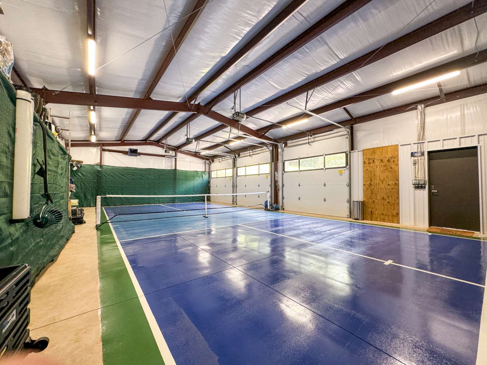 - 3-car detached garage (30'd x 50'w, 1,500 sq ft) with an indoor pickleball court! The "Barn" has three 10' x 10' doors, is heavily
